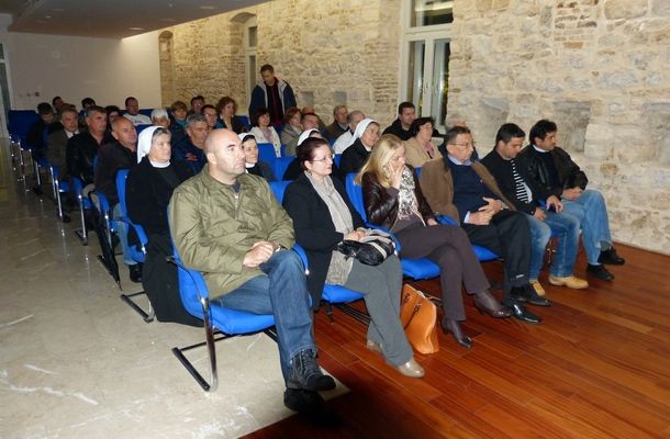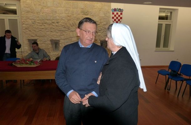 Na kraju tribine u ime svih okupljenih, u znak zahvale za održano predavanje, časne sestare uručile su prof. dr. sc. Matku Marušiću prigodni privjesak kojeg su donijele iz Svete zemlje.
