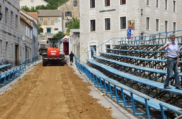 Palke su postavljene prije nekoliko dana, a danas je duž staze dovezeno i razastrto oko 350 kubika pržine. Rukovoditelj tehničke operative trkališta dipl. ing. Ivica Vrca kazao nam je kako je materijal dosta dobar i kako vjeruje da će stazom biti zadovoljni i alkari.