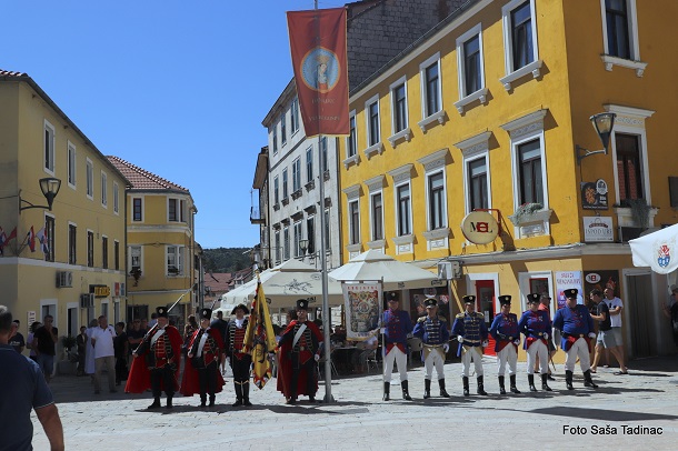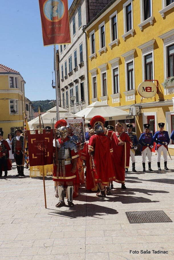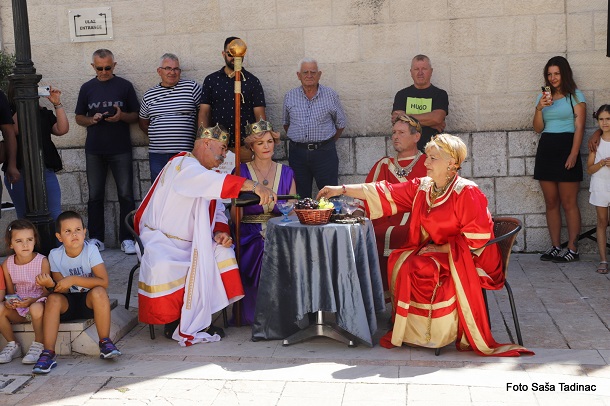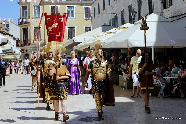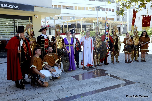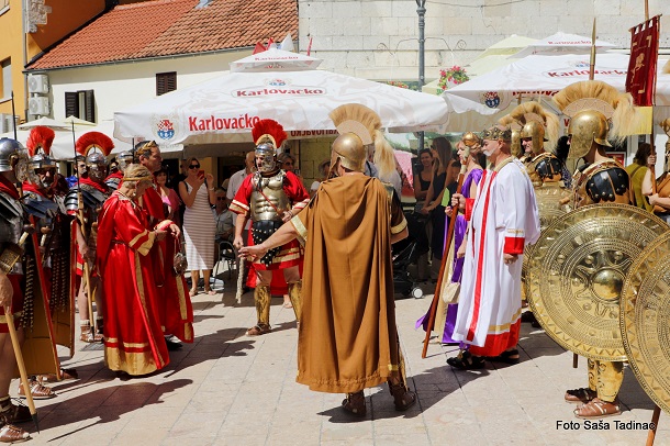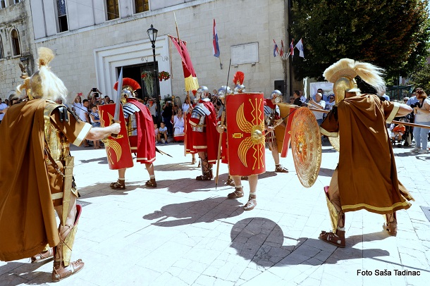 Sve je počelo na Trgu dr. Franje Tuđmana gdje je gradonačelnik Sinja Miro Bulj izvršio smotru svih povijesnih postrojbi koje su potom krenule Glavičkom ulicom, do trga Kralja Tomislava gdje je za brojnu publiku izvedena predstava ‘Priznavanje statusa Dalmacije, koje ime i danas uživamo, od strane rimskog cara’. Cezar Klaudije, kojeg utjelovljuje Damir Banić, u pratnji carice Priske, koju igra Vesna Vučković, potpisao je dokument kojom se priznaje ime Dalmacije. S druge strane, u zahvalu za taj čin carica Teuta, odnosno Danja Lakić, u pratnji cara Agrona vratila je rimskom caru orla kojega su Delmati u borbi oteli Rimljanima. U drugom činu ove predstave Rimljani, odnosno car Klaudije, predao je Delmatima ploču na kojoj je otisnut zapis o utemeljenju grada Osiniuma, današnjeg Sinja.