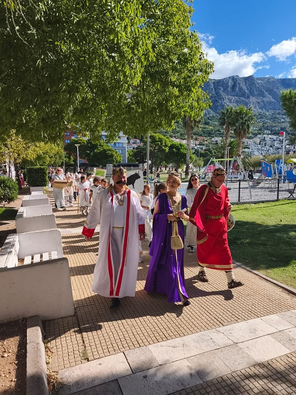 Poseban trenutak uslijedio je kada je Ilirska kraljica Teuta učenicima pročitala priču Legenda o Gaju Laberiju, autorice Niveske Juraga-Kovačev, čime je događaj povezan s Festivalom priča – završnom aktivnošću projekta održanom uz financijsku podršku Grada Omiša.