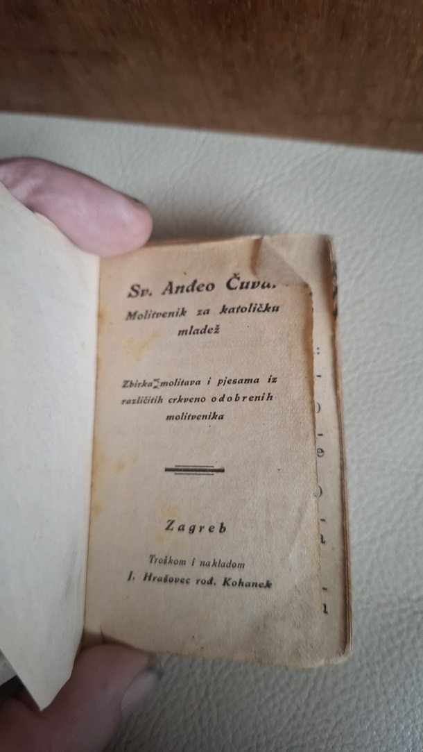 Jutros sam ponovno zavirio u Kuletinovu drvenu kutijicu. Pogled mi se zaustavio na molitveniku “Sv. Anđeo Čuvar”. To je molitvenik za katoličku mladež. Taj molitvenik je zbirka molitava i pjesama iz različitih crkveno odabranih molitvenika. Prodavao se u antikvarijatima kao rijetka knjiga s molitvama i pjesmama, često tiskan u tvrdom uvezu i dimenzija oko 5,5 X 9,5 cm, 224. str.