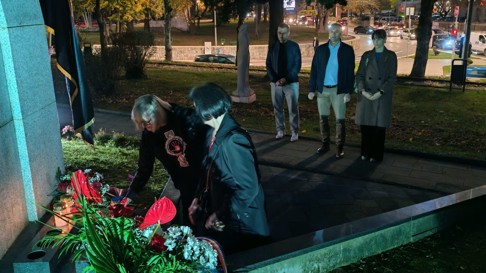 Nakon toga, vijenci su položeni i svijeće zapaljene ispred biste prvog predsjednika Republike Hrvatske dr. Franje Tuđmana na istoimenom trgu.