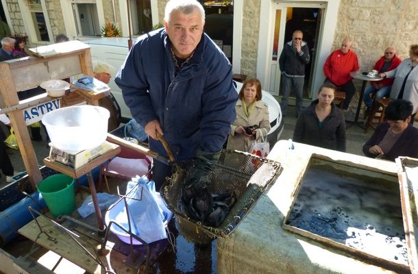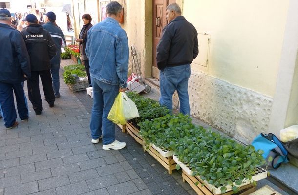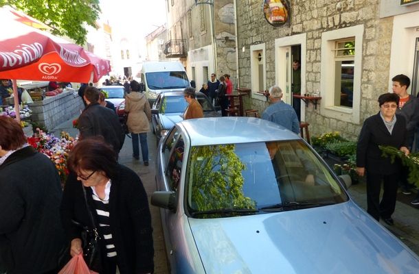 Ovaj petak, uoči Cvjetnice posebna gužva vladala je na Peškariji i Pijaci. Omiljeno okupljališta Sinjana – Peškarija, bila je prepuna raznih prehambenih artikala prigodnih za ovo vrijeme. Poprilična gužva vladala je kod banaka na kojima se prodavala riba. Pedesetak kašeta punih srdele, mola, skuše i ostalih plodova mora brzo su ispražnjene, jer mnogi su željeli za današnji dan imati ribu za obiteljski ručak. Isto tako, po solidnim cijenama mogla se kupiti domaća pastrva. Prodavači su na svojim štandovima i ovoga puta pripremili solidnu ponudu povrtlarskih i ostalih kultura. Tako se jutros moglo kupiti domaće salate, kelja, karote, špinata, pure, slanutka, svježeg i kiselog kupusa i drugih povrtlarskih delicija. Osim toga, na štandovima se moglo naći i kvalitetnog domaćeg sira, jaja i rešti domaćeg luka. Mnogi su, kao i obično, htjeli automobilima doći u samo središte, do Peškarije, pa se u tom dijelu grada stvarala i dodatna gužva.