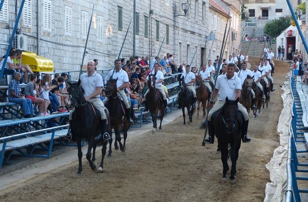 Jučerašnji dan bio je i zanimljiv i tijekom jutra, jer se nastavilo snimanje dokumentarno-igranog filma o Alki, u produkciji HTV-a, pa su na trkalište izišli alkari Jure Domazet i Frano Ivković, koji su odličn gađali u alku. U deset trka pogodili su čak 5 srida, od toga Domazet 3, a Ivković 2.