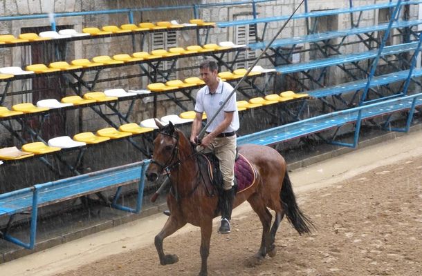 Kiša koja nije prestajala nagnala je vojvodu Antu Vučića i časni sud da se prove prekinu, pa su alkari pod vodstvom zamjenika alajčauša Marija Šušnjare vratili konje na hipodrom.