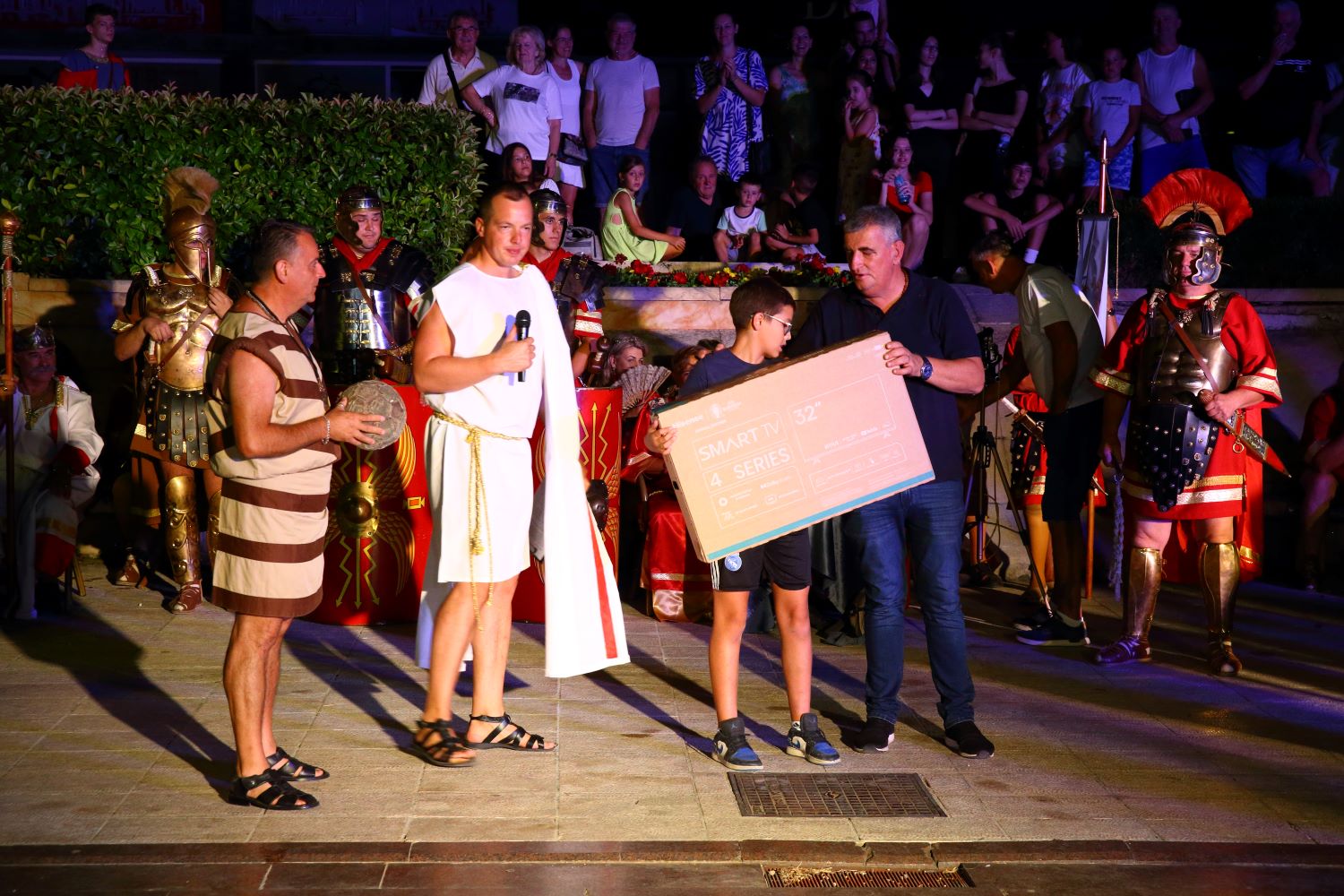 Na Trgu dr Franje Tuđmana okupilo se mnoštvo gledatelja koji su uživali u antičkom spektaklu. Kao i svake godine, odigrala se ‘Utakmica Delmata i Rimljana’ u kojoj su, unatoč pobjedi od 5:0 za Dalmate, po odluci cara Dioklecijana, Delmati dobili, ali su pobijedili Rimljani te je pobjednički stijeg stavljen na barjak Rimljana.