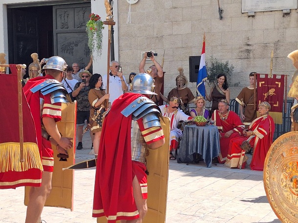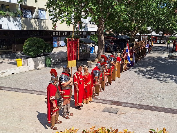 ‘Radionice za ovaj događaj provodile su se svake srijede od 1. lipnja. Članovi povijesne postrojbe su marljivo radili i usavršavali ustroj u antičkim vojnim vježbama, a rezultat smo vidjeli na Trgu kralja Tomislava, na Pijaci’, rekao je Dejan Poljak, predsjednik Udruge PKD Gaj Laberie.