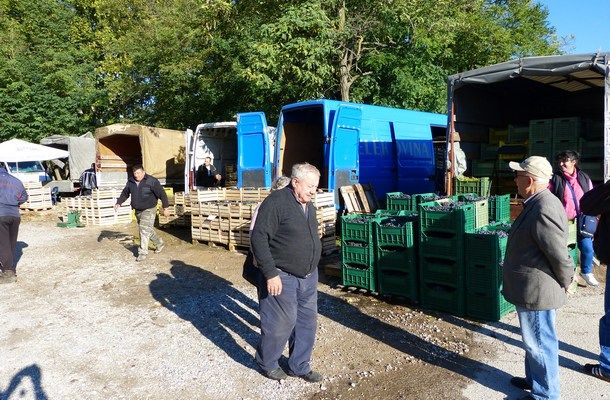 Prvi Feratin jesenski đir završili smo na mjestu koje će narednih dvadesetak dana biti glavno okupljalište ljudi, a to je sinjski Hipodrom. Razlog okupljanja ljudi neće biti konjičke utrke niti boćarski susreti nego prodaja grožđa. Iako ovu godinu mnogi s pravom ocjenjuju kao jednu od najlošijih što se uroda tiče te ističu kako ni bačve ne treba zatapati, ritual prodaje i kupnje grožđa i ugodnih razgovora je počeo. Malobrojni kupci i sedamnaest prodavača sa svojim grožđem slika su ovoga dana. U ponudi se uglavnom može naći grožđe s vrgoračkog područja i sela koja ga okružuju. Za sada nema Imoćana, Drnišana niti prodavača grožđa s otoka. U ponudi uglavnom prevladava crno grožđe, pa se može naći Merlota po 6, Mali Plavac 5 i Plavina po 4 kune. Po sličnim cijenama može se kupiti i rani Vranac, dok u kašetama s bijelim grožđem prevladava zlatarica i smederevka po 4,50 kuna.