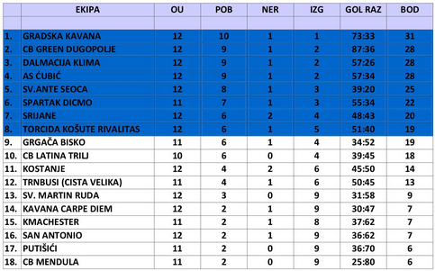 Proteklog vikenda odigrano je 12. kolo triljskog malonogometnog prvenstva. Donosimo rezultate i prvenstvenu tablicu.