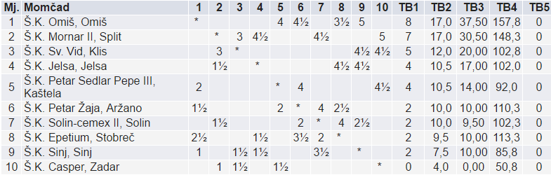 Sinjski šahisti poraženi od vodećeg Omiša