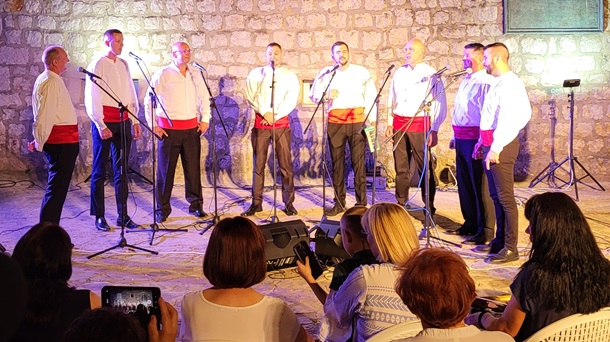 Baš su domaćini otvorili koncert s nekoliko poznatih klapskih uspješnica, a onda su im se u najljepšem ambijentu za klapske prigode odmah nakon Alkarskih dvora, redale klape prijatelji – ženska klapa Kolura iz Splita, mješovita klapa Školji iz Tkona s otoka Pašmana, muška klapa Cetinjani iz Hrvaca, klapa Zagora Dicmo-Trilj te mješovita klapa Šuferini iz Srinjina.