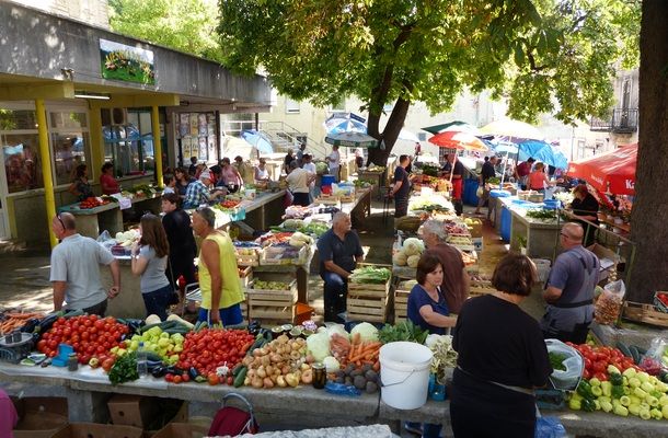 Na Pijaci gužva na svakom koraku. Pronaći mjesto ispod nekog štekata prava je sreća. Ni ovoga puta sinjska peškarija nije iznevjerila. Dobri stari, kameni banci ispunjeni su bogatom ponudom voća i povrća vrijednih cetinskih poljoprivrednika.