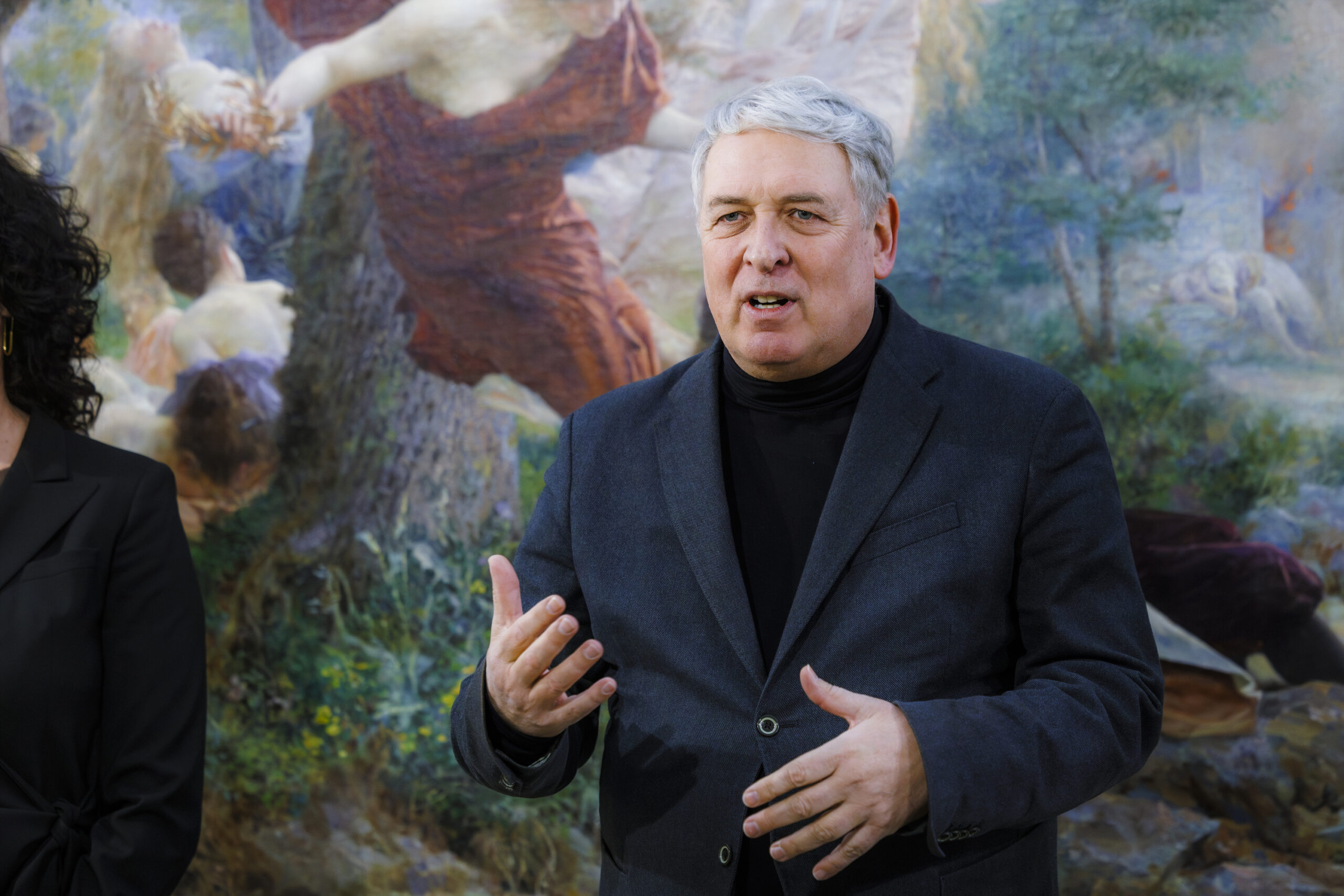 Ispred Nacionalnog muzeja moderne umjetnosti posjetitelje je pozdravio ravnatelj Branko Franceschi koji je izrazio svoje zadovoljstvo postavom izložbe.