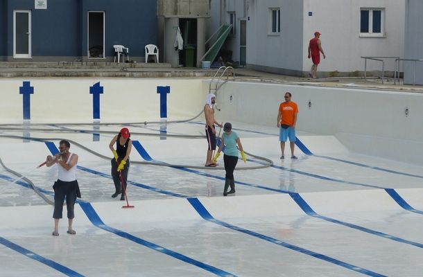 Ranijih godina na pripremi i uređenju bazena radile su osobe zaposlene na Javnim radovima. Kako Program javnih radova ove godine još nije počeo, zanimalo nas je tko su ljudi koje smo jutros zatekli na bazenu.