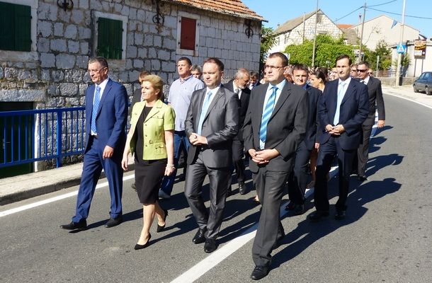 ‘Svima koji u ovom gradu činimo dobro, čestitam ovaj blagdan. Čestitam i onima koji su nagrađeni i želim da ovaj grad u zajedništvu vjere, ljubavi i veselja napreduje u svakom pogledu. Također mi je drago, ne preko televizije u dva nego uživo pozdraviti gospođu Kolindu Grabar Kitarović, koja je ovdje došla na našu svetkovinu vjerski, a ne kao političarka. Zamolila je da sudjeluje u ovom slavlju, na tome joj zahvaljujem i srdačno je pozdravljam’, kazao je don Stipe Ljubas.