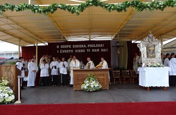 Na Vigiliju Velike Gospe svečanu svetu misu na Trgu dr. Franje Tuđmana u Sinju predvodio je mons. Želimir Puljić, nadbiskup zadarski i predsjednik HBK, uz koncelebraciju više svećenika.