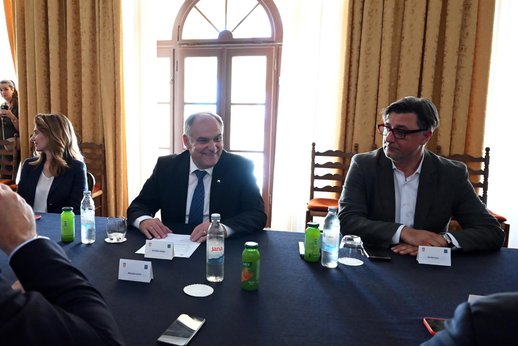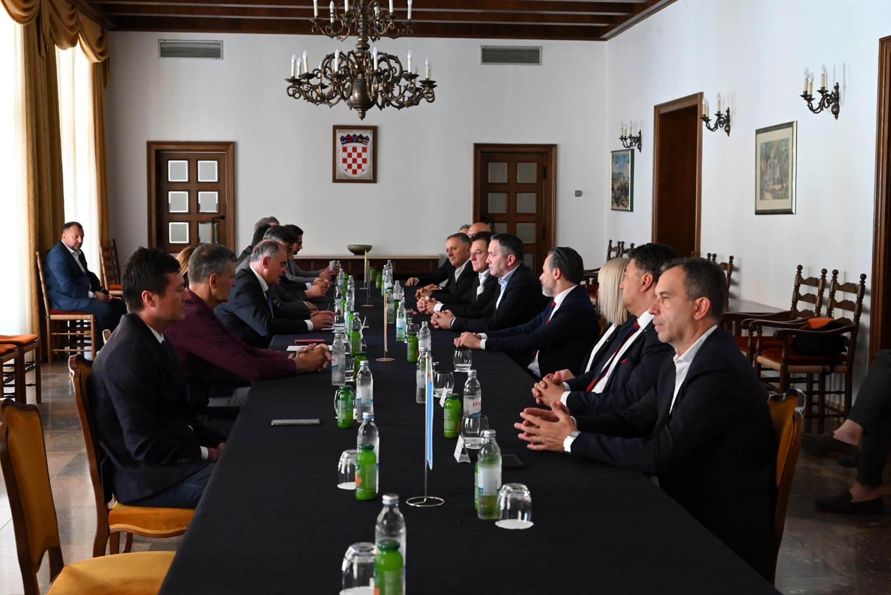Župan Blaženko Boban sa suradnicima i povjerenica Vlade Republike Hrvatske za Grad Split Mirna Veža primili su danas, uoči finalne utakmice Kupa Republike Hrvatske, predsjednika HNS-a Marijana Kustića, predsjednika HNK Rijeka Damira Miškovića i predsjednika HNK Hajduk Lukšu Jakobušića.